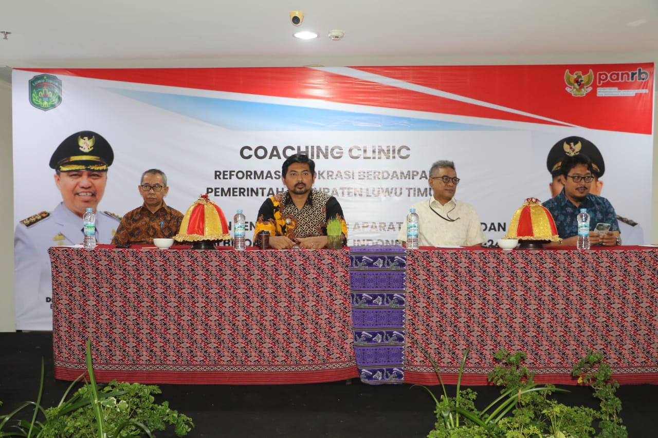 Kepala Bagian Organisasi Setdakab Luwu Timur, Hj. Andi Asmah Sari melaporkan, Coaching Clinic ini dilaksanakan sebagai tindak lanjut beberapa catatan rekomendasi perbaikan hasil evaluasi pelaksanaan RB tahun 2023 atas beberapa penilaian indikator dengan skor penilaian masih dianggap kurang.