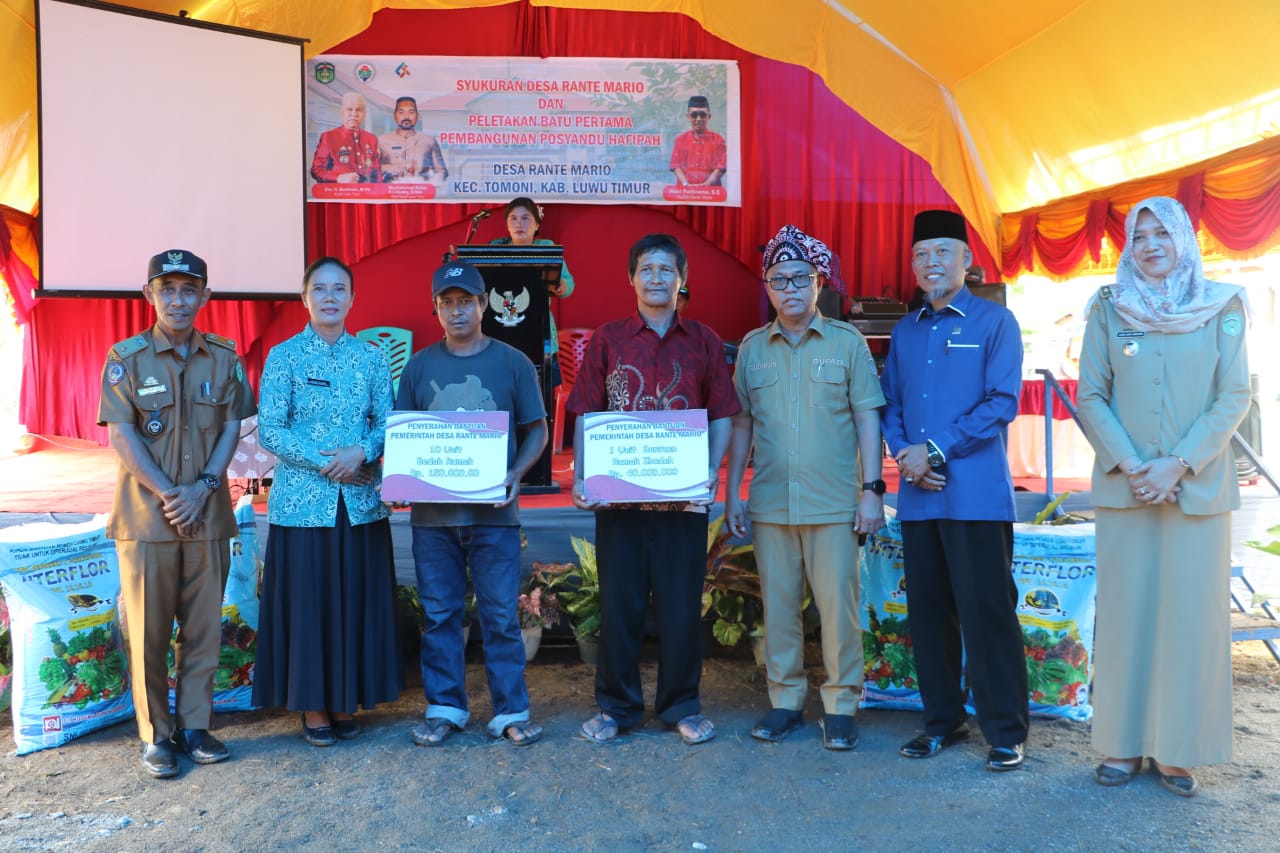 Peletakan batu pertama yang dirangkaikan dengan acara syukuran Desa Rante Mario juga diisi dengan kegiatan penyerahan bantuan pupuk kepada 18 Kelompok Tani (Poktan) di tiga desa yakni Poktan Desa Pepuro Kecamatan Wotu, Poktan Desa Ujung Baru dan Rante Mario Kecamatan Tomoni, Penyerahan motor operasional Sekretaris Desa Rante Mario, Penyerahan Dana Hibah Rumah Ibadah dan Bedah Rumah.