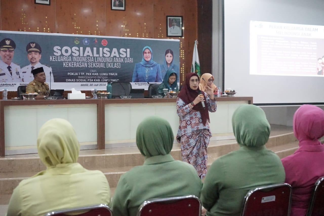 LUWU TIMUR – Tim Penggerak PKK Kabupaten Luwu Timur bekerjasama dengan Dinas Sosial Pemberdayaan Perempuan dan Perlindungan Anak (Dinsos P3A) menggelar Sosialisasi Keluarga Indonesia Lindungi Anak dari Kekerasan Seksual (KILAS).