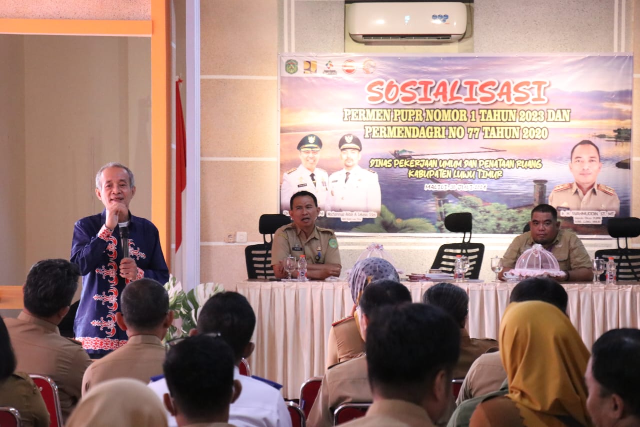LUWU TIMUR – Dalam rangka untuk meningkatkan Sumber Daya ASN dan pelaku jasa konstruksi maka Dinas Pekerjaan Umum dan Penataan Ruang Kabupaten Luwu Timur menggelar Sosialisasi Permen PUPR Nomor 1 Tahun 2023 dan Permendagri Nomor 77 Tahun 2020.