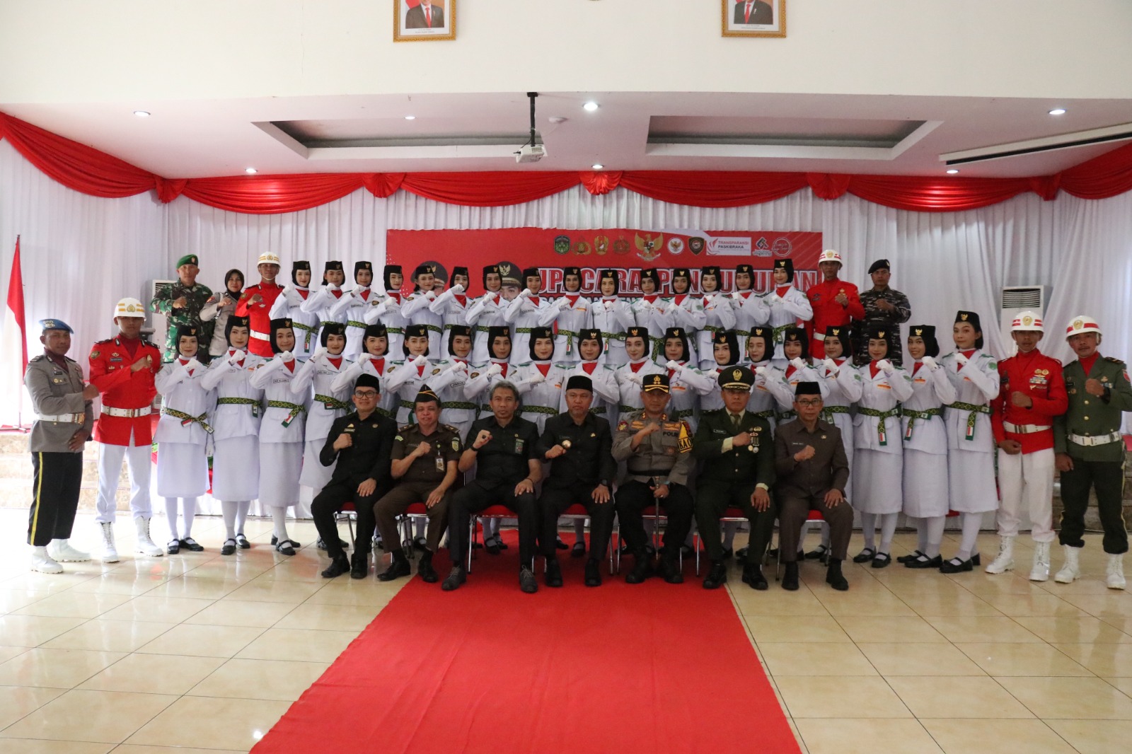 LUWU TIMUR – Bupati Luwu Timur, H. Budiman bersama Forum Koordinasi Pimpinan Daerah (Forkopimda) Kabupaten Lutim mengukuhkan Pasukan Pengibar Bendera Pusaka (PASKIBRAKA) Merah Putih Tahun 2024 di Gedung Wanita Simpurusiang Malili, Jum’at (16/08/2024).