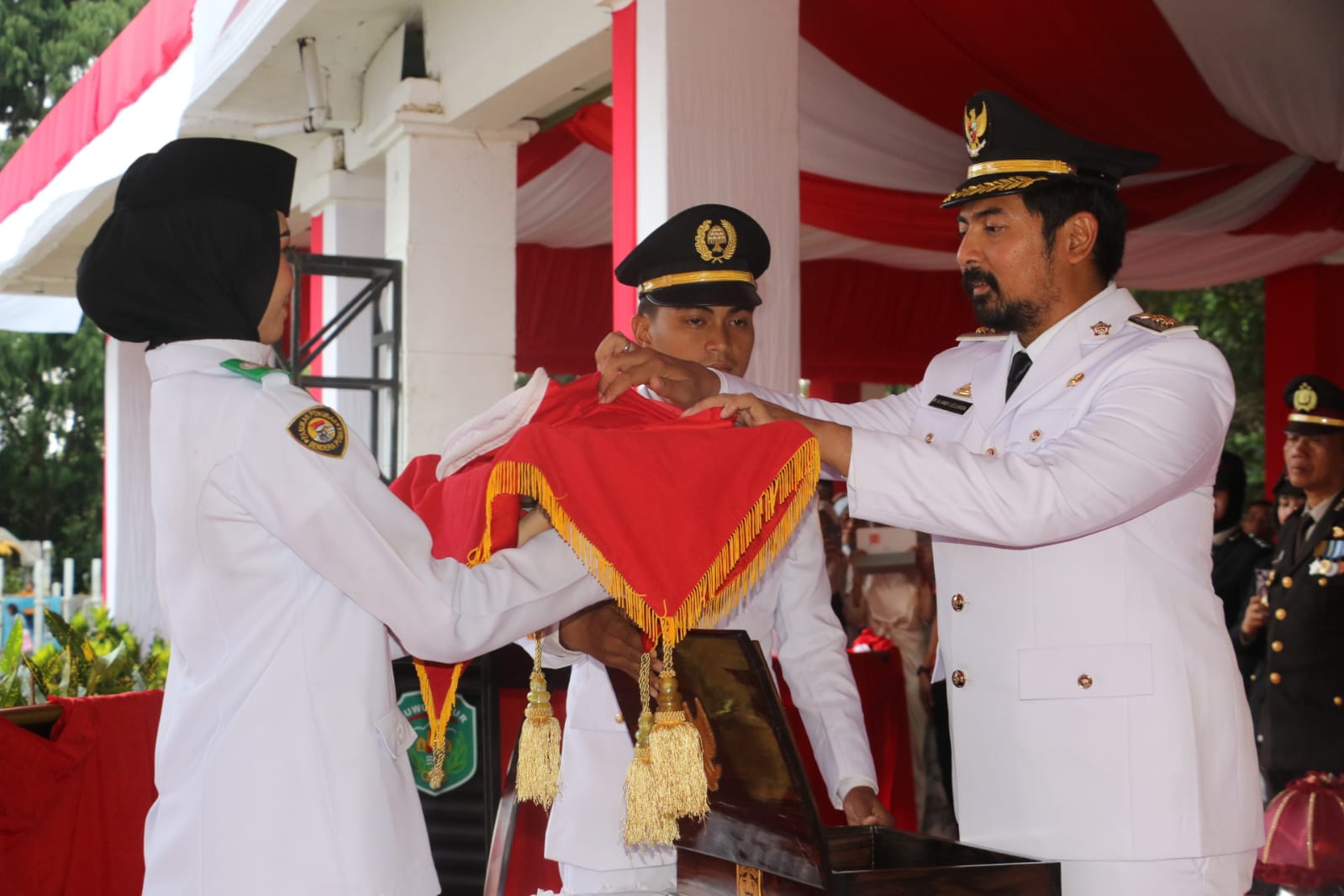 Mereka adalah Muhammad Ghazy utusan SMAN 3 Luwu Timur dan Muh. Satria Meyditama Reyhan utusan SMKN 2 Luwu Timur sementara penggerek bendera, Dedi Pagau utusan SMAN 12 Malili.