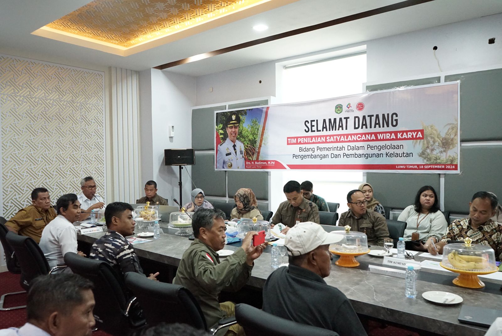 LUWU TIMUR – Bupati Luwu Timur, H. Budiman memaparkan program konservasi dalam rangka pelaksanaan verifikasi dan survey lapangan penganugerahan tanda kehormatan satyalancana wira karya bidang pemerintahan dan pengelolaan, pengemabangan dan pembangunan kelautan, di Ruang Rapat Bupati, Rabu (18/09/2024).
