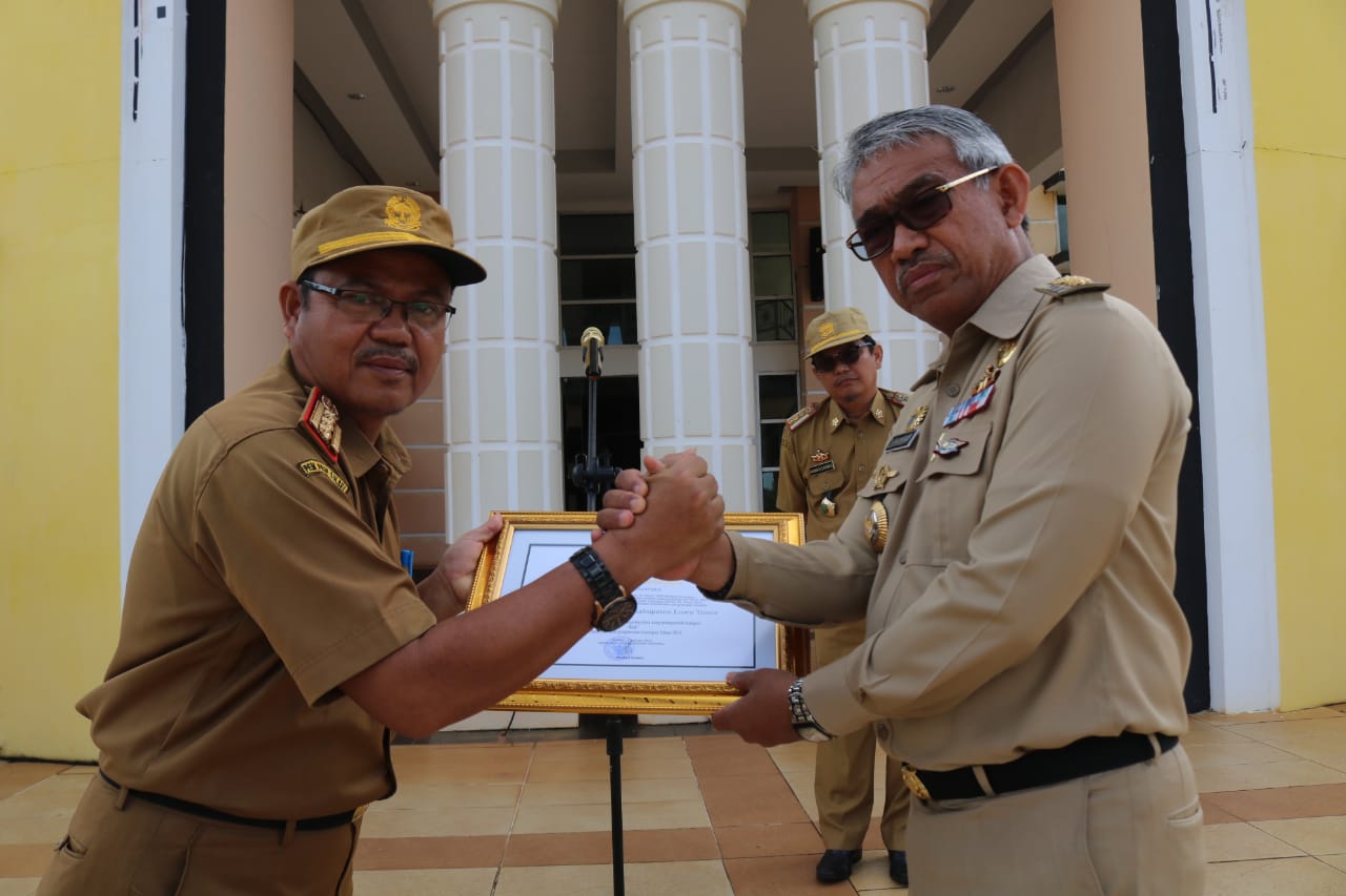 LUWU TIMUR – Camat Towuti, Saenal, mendampingi Pejabat Sementara (Pjs.) Bupati Luwu Timur dalam menghadiri sekaligus menyerahkan sertifikat dan piagam Pemagangan Dalam Negeri kepada peserta Angkatan XIV Lembaga Pelatihan Kerja Swasta (LPKS) Mandiri.