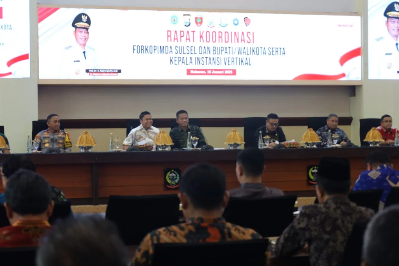 Rapat yang dipimpin oleh Penjabat Gubernur Sulsel, Prof Fadjry Djufry, mengusung tema “Sinergi Akselerasi Pembangunan Sulawesi Selatan Tahun 2025.” Pertemuan ini bertujuan memperkuat harmonisasi dalam penyelenggaraan pemerintahan dan pembangunan berkelanjutan.