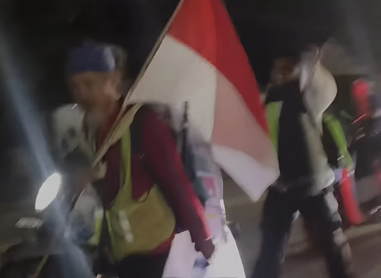 Sebuah video yang memperlihatkan dua pria yang sedang berjalan kaki yang disebut menuju Mekkah, untuk menunaikan ibadah di tanah suci menjadi viral di media sosial. Video tersebut diunggah oleh akun bernama Haslinda dan menunjukkan kedua pria yang membawa tongkat dengan bendera merah putih yang diikatkan padanya.