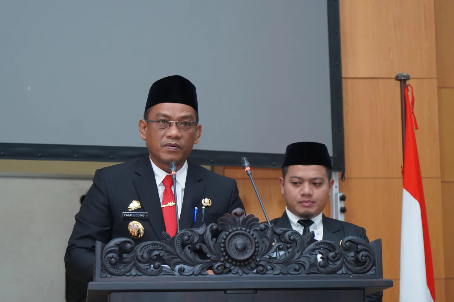 Bupati dan Wakil Bupati Luwu, Patahudding dan Muhammad Dhevy Bijak Pawindu, menyampaikan pidato visi-misi dalam rapat paripurna DPRD Luwu, Rabu (5/3/2025).