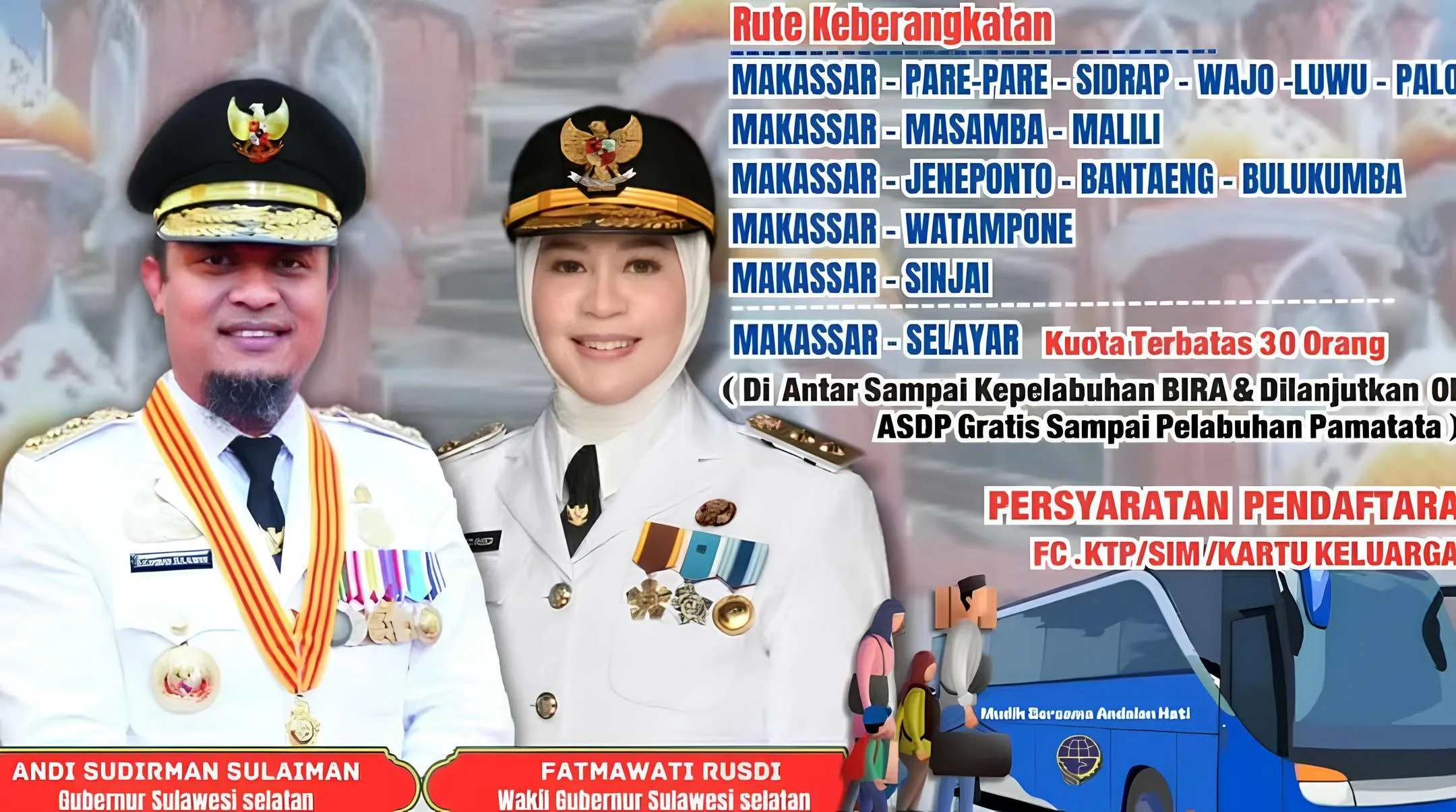 Program ini merupakan bentuk kepedulian Gubernur Andi Sudirman Sulaiman dan Wakil Gubernur Fatmawati Rusdi dalam membantu masyarakat agar dapat merayakan Lebaran bersama keluarga di kampung halaman dengan nyaman dan aman.