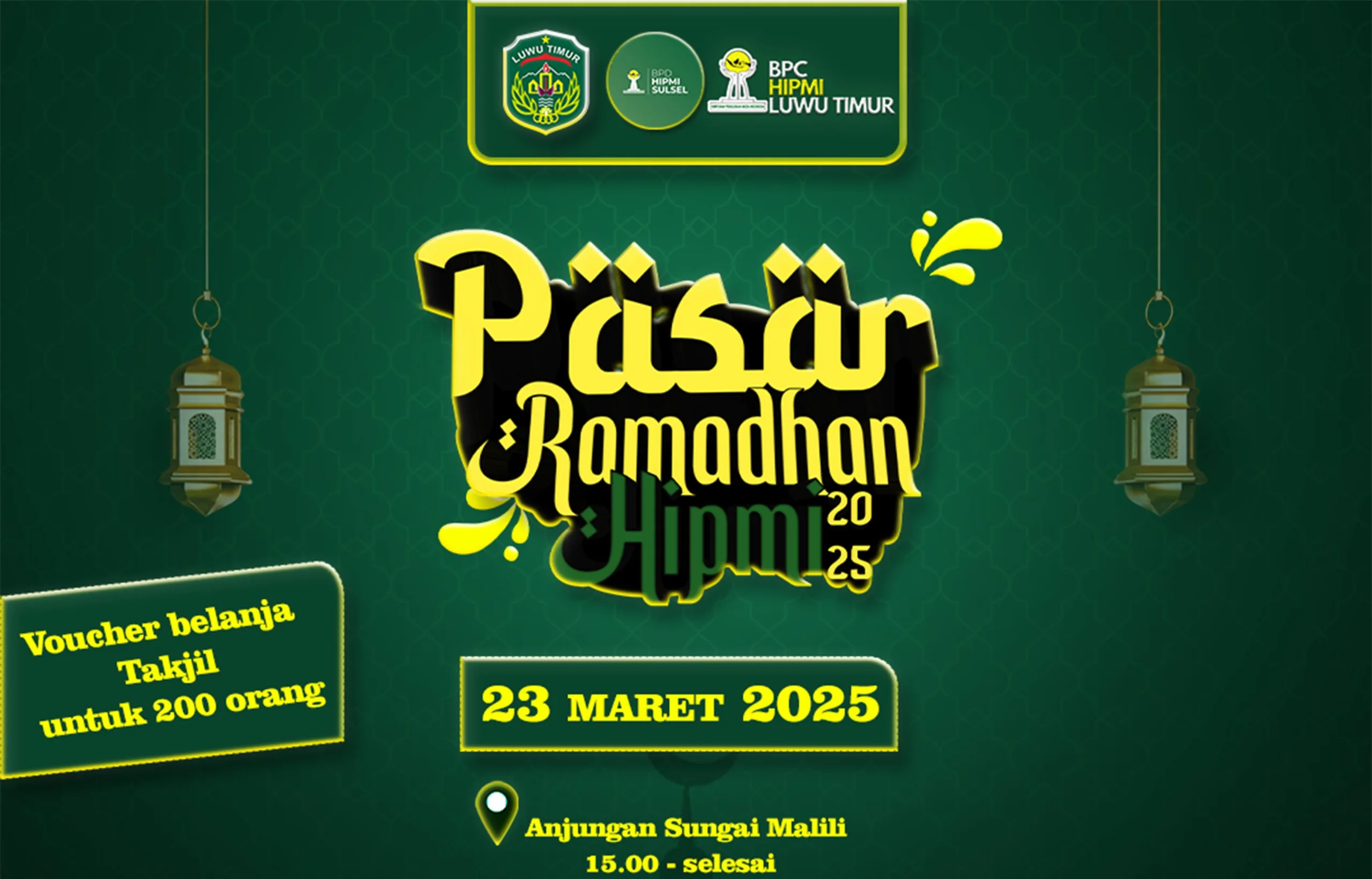 Pemerintah Kabupaten Luwu Timur bersama Himpunan Pengusaha Muda Indonesia (Hipmi) akan menggelar Pasar Ramadhan dan Pangan Murah pada Minggu, 23 Maret 2025, di Anjungan Sungai Malili, sore nanti.