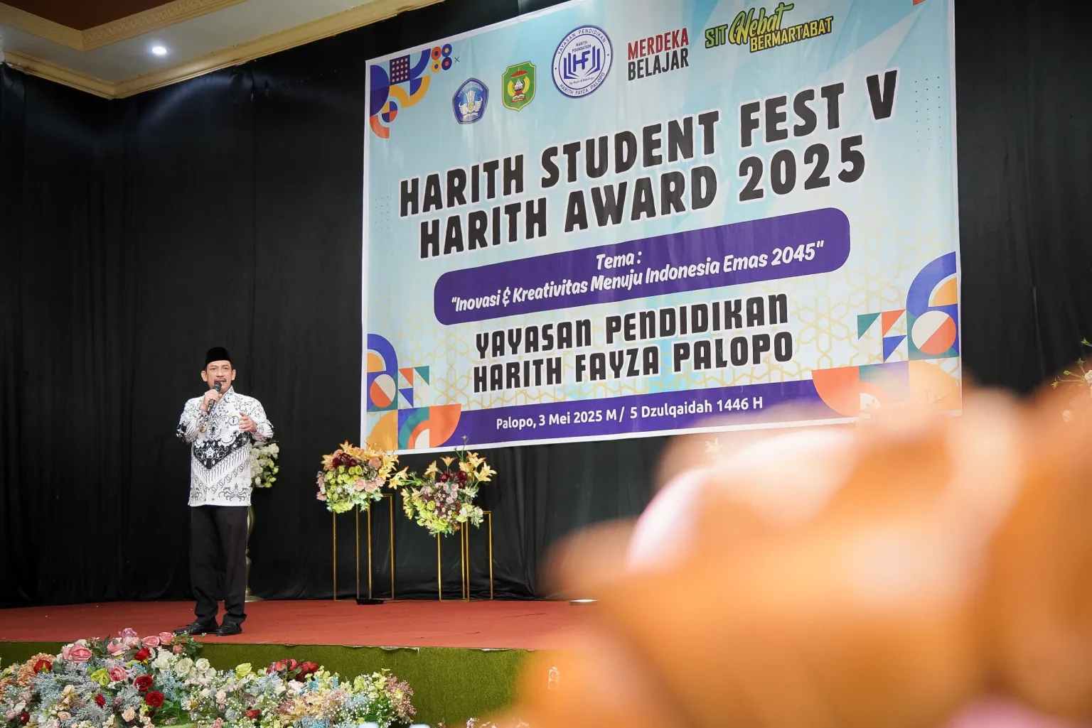 Gedung MCH Kota Palopo menjadi saksi kemeriahan Harith Student Fest ke-5 dan Harith Award 2025 yang berlangsung pada Sabtu (3/5/2025). Kegiatan ini mengusung tema “Inovasi dan Kreativitas Menuju Indonesia Emas 2045” dan dihadiri langsung oleh Pj Wali Kota Palopo, Firmanza DP.