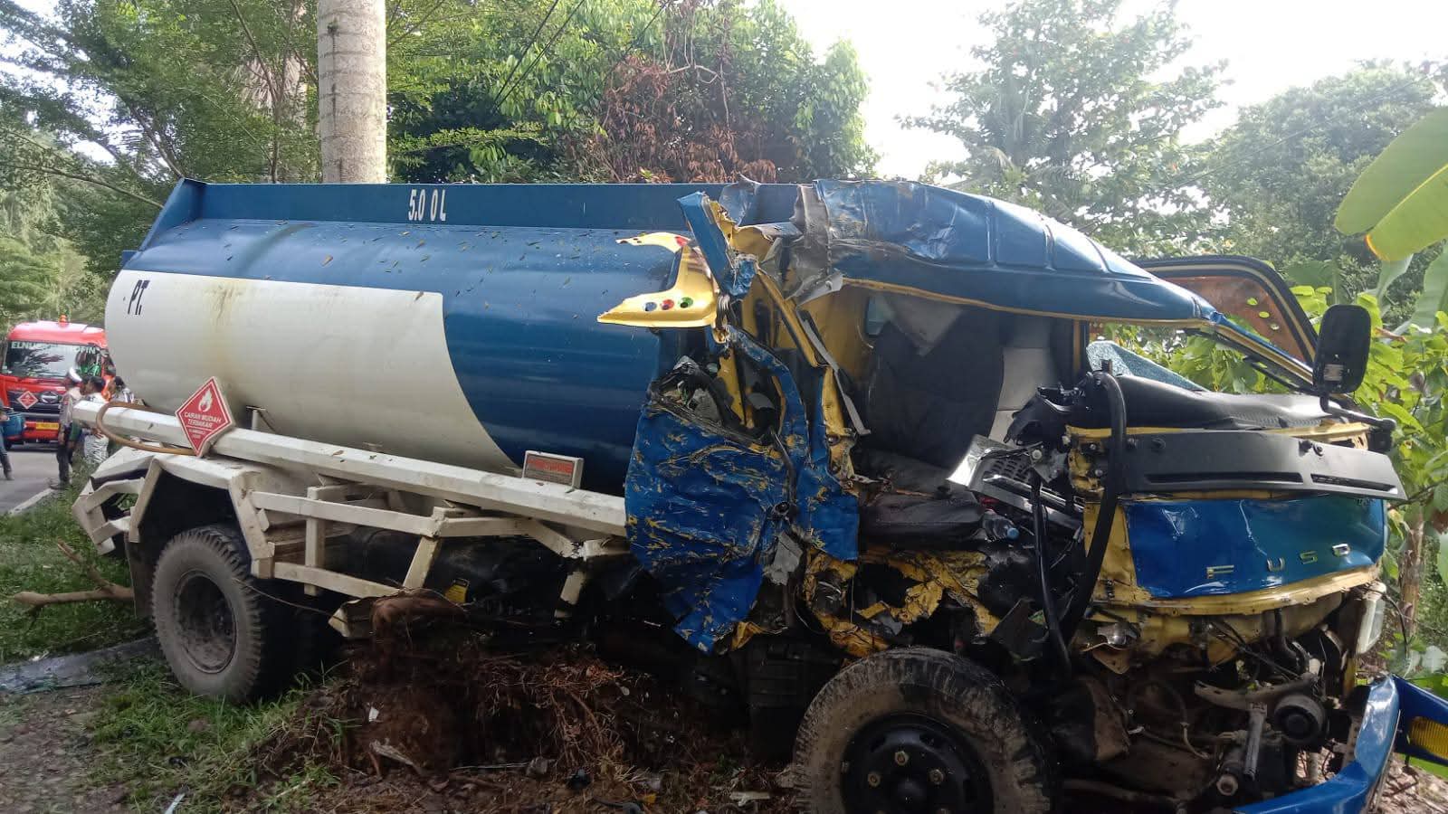 Benturan keras terjadi setelah bus diduga mengambil jalur berlawanan dan bertabrakan secara frontal dengan truk tangki yang melaju dari arah berlawanan.