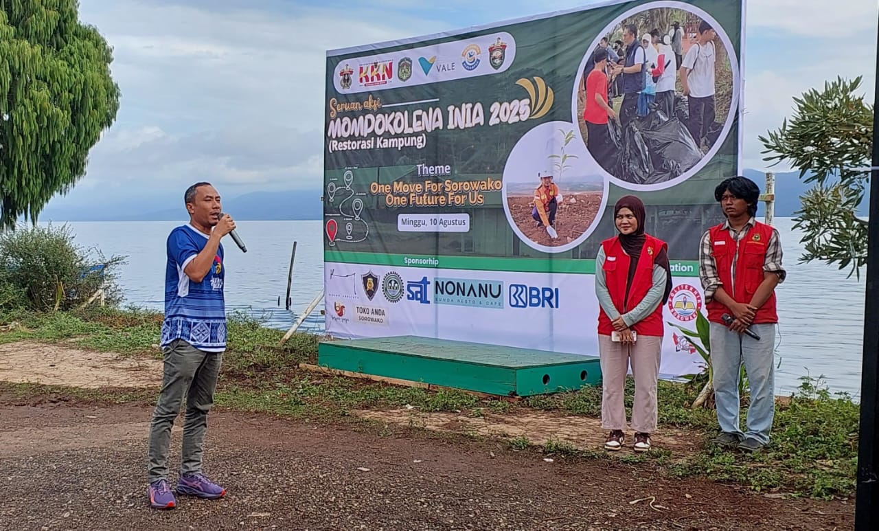Warga Desa Sorowako, Kecamatan Nuha, bersama mahasiswa KKN Tematik 114 Pariwisata Universitas Hasanuddin, pemerintah, komunitas, hingga pihak swasta menggelar aksi bersih-bersih kampung bertajuk “Mompokolena Inia” dengan tema “One Move for Sorowako, One Future for Us”, Ahad (10/8/2025).
