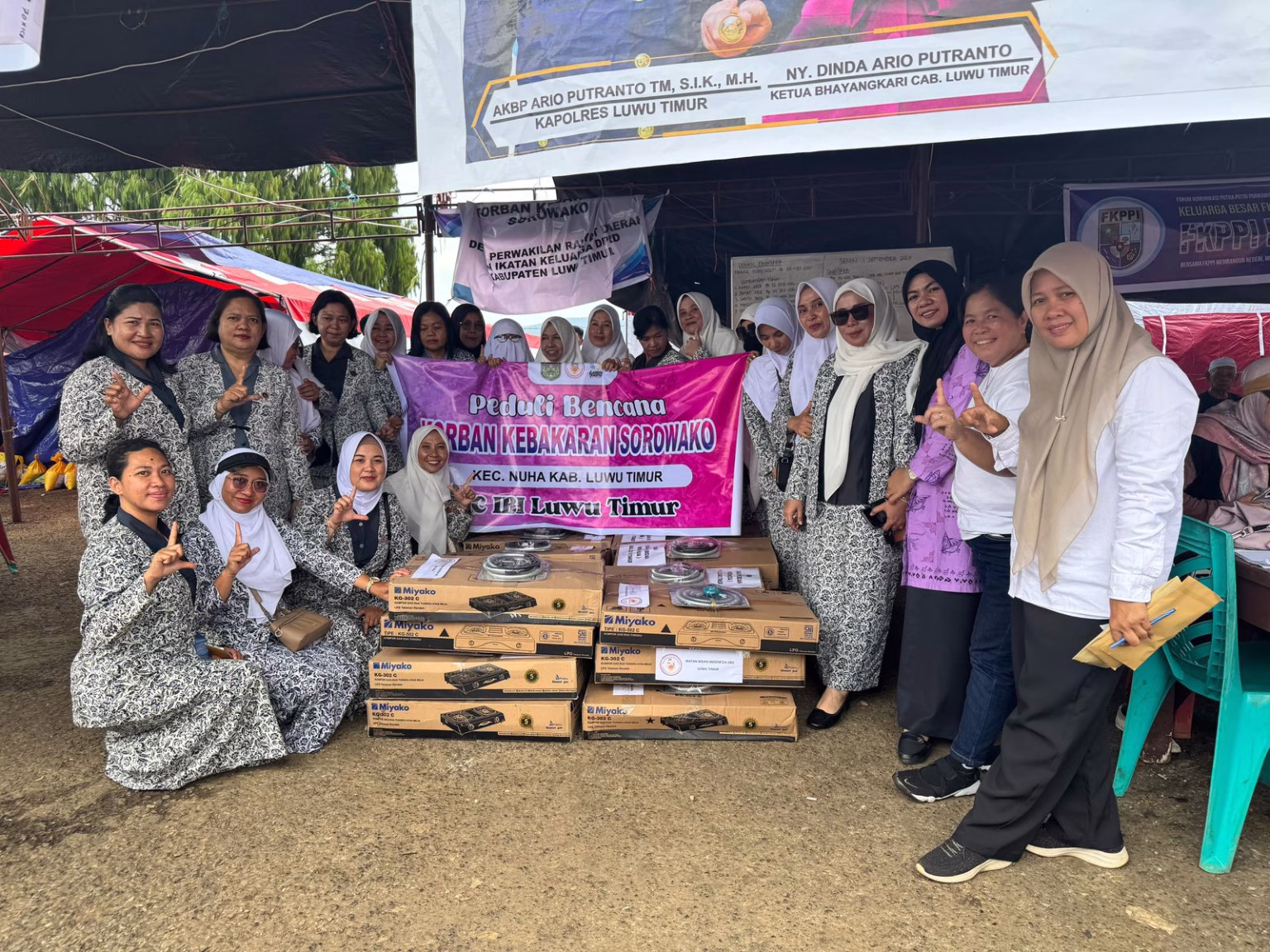 Ikatan Bidan Indonesia (IBI) Cabang Luwu Timur menunjukkan kepeduliannya terhadap warga terdampak kebakaran di Sorowako, Kecamatan Nuha, Pada Rabu (03/09/2025).