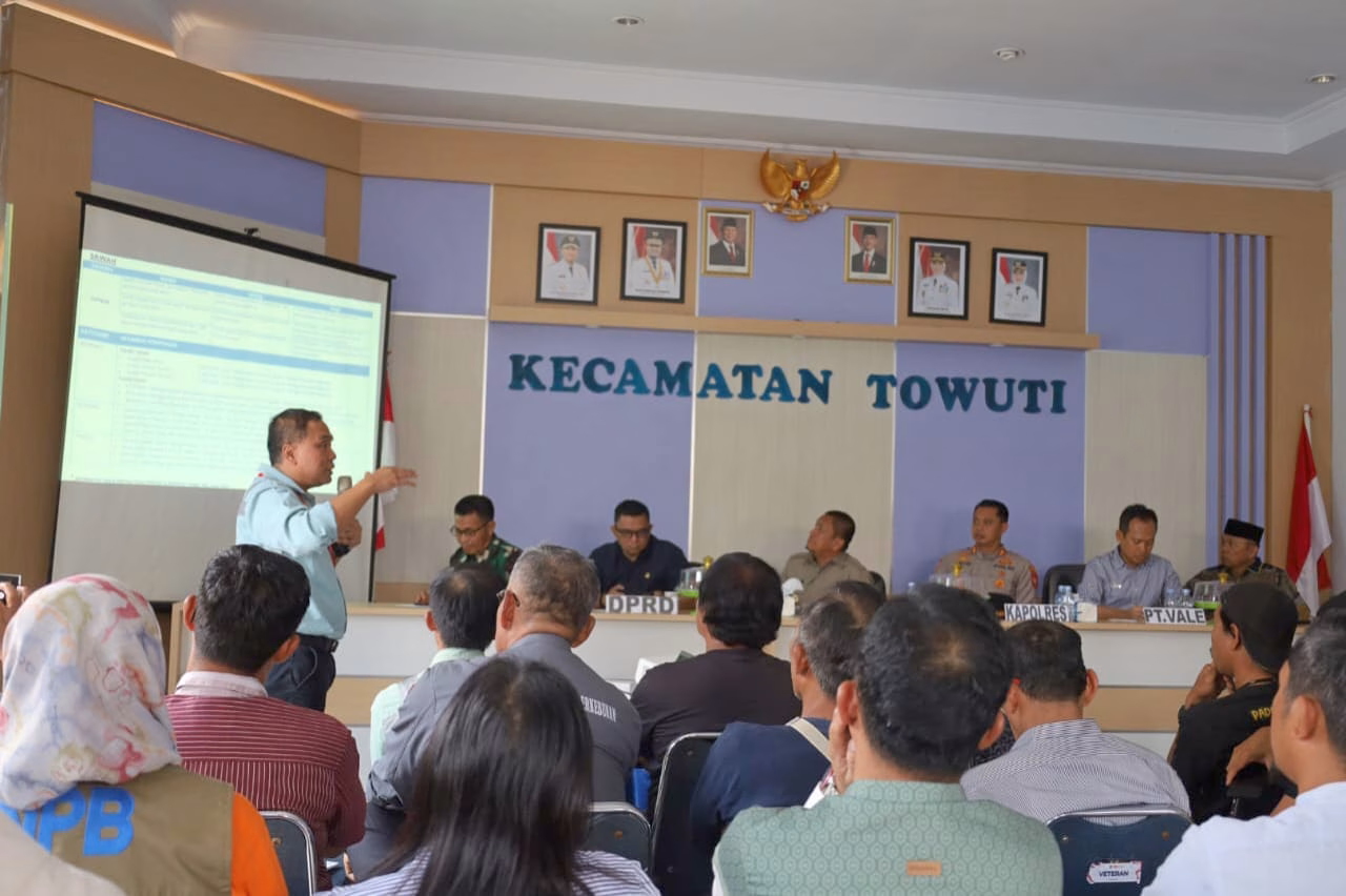 Bupati Luwu Timur, Irwan Bachri Syam memimpin Rapat Koordinasi (Rakor) bersama dengan PT. Vale Indonesia (PTVI) untuk membahas solusi alternatif terkait dampak kebocoran pipa, yang berlangsung di Aula Kantor Camat Towuti, Jumat (05/09/2025).