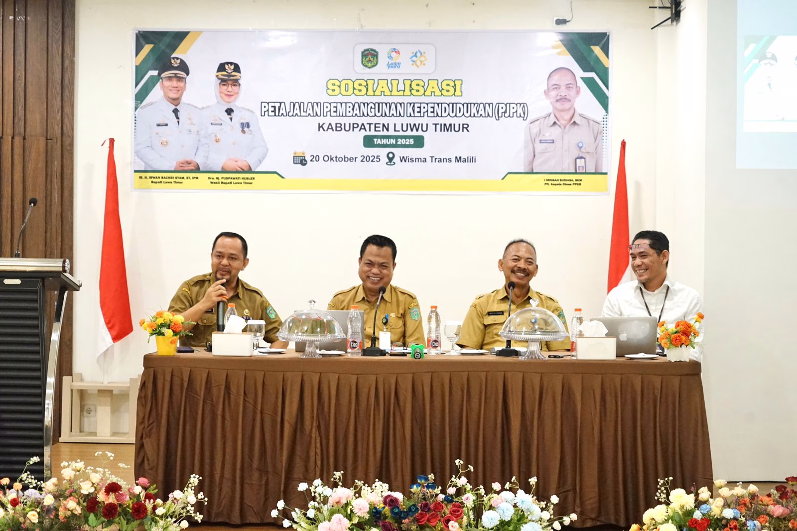 Pemerintah Kabupaten Luwu Timur mulai menyusun arah kebijakan kependudukan lima tahun ke depan melalui kegiatan Sosialisasi Penyusunan Peta Jalan Pembangunan Kependudukan (PJPK) 2025–2029 yang digelar Dinas Pengendalian Penduduk dan Keluarga Berencana (DPPKB), Senin (20/10/2025) di Aula Wisma Trans Malili.