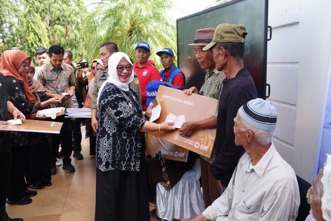 Sebanyak 251 lansia dari 10 desa dan 1 kelurahan hadir langsung menerima Kartu Lansia di halaman Kantor Bupati.