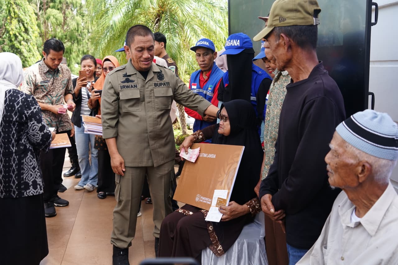 Bupati Irwan Bachri Syam bersama Wakil Bupati Puspawati Husler tampak mendampingi satu per satu lansia yang hadir, memastikan semuanya dilayani dengan baik.