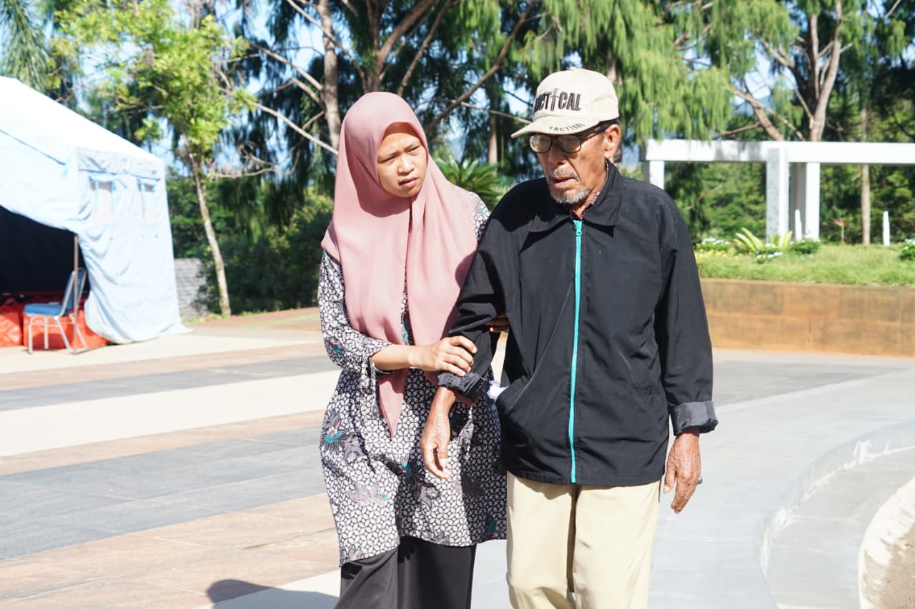 Di sebelahnya, Hasriani, anak perempuannya, menggenggam tangan sang ayah dengan senyum penuh syukur. “Bapak senang sekali, rasanya seperti diberi semangat baru,” katanya.