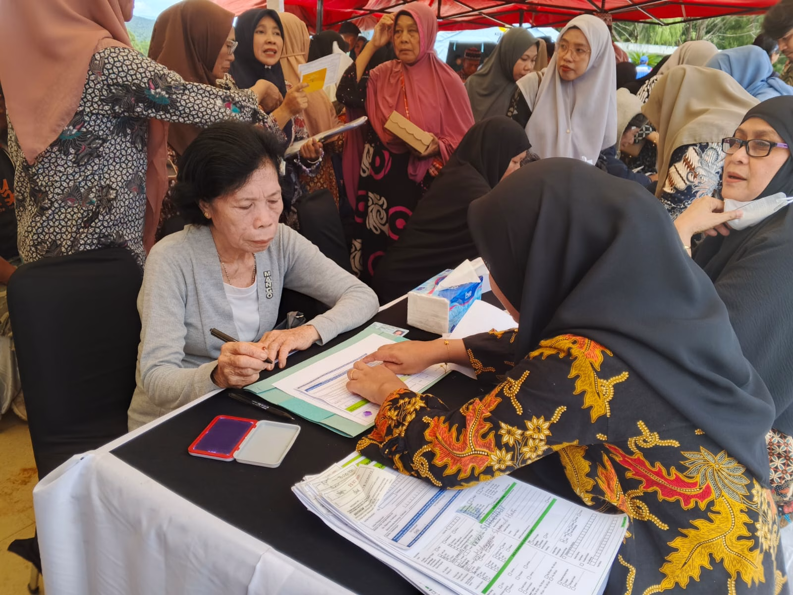 Di antara mereka, Tandioga, 80 tahun, warga Desa Laskap, duduk tenang di kursi barisan depan. Matanya berkaca-kaca saat namanya dipanggil.