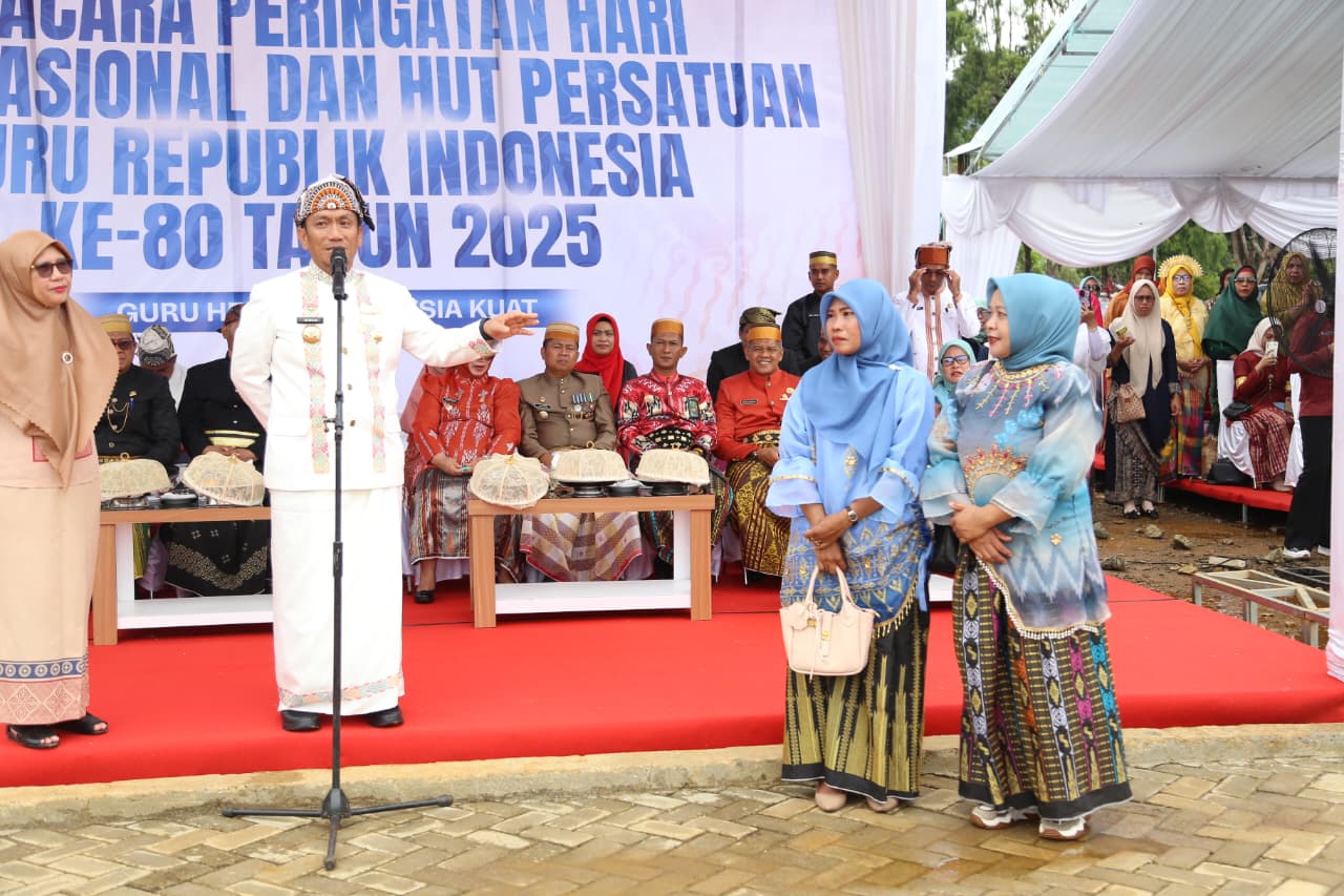 Peringatan Hari Guru Nasional (HGN) dan HUT ke-80 PGRI di Luwu Timur berlangsung penuh haru di Lapangan Pendidikan Malili, Kamis (27/11/2025).