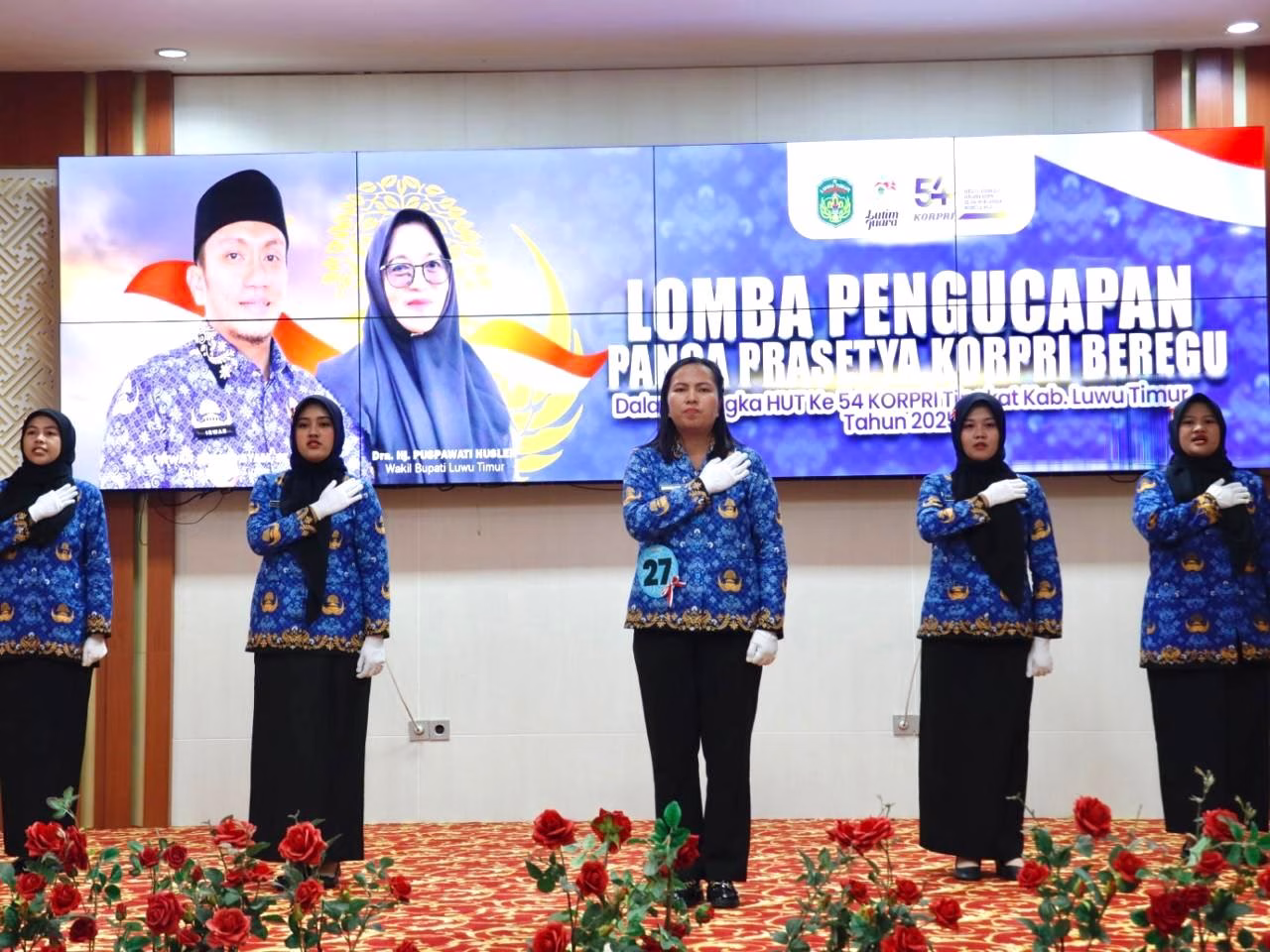 Dalam rangka memperingati Hari Ulang Tahun (HUT) ke-54 Korps Pegawai Republik Indonesia (KORPRI), Pemerintah Kabupaten Luwu Timur menggelar Lomba Pengucapan Panca Prasetya KORPRI Beregu di Aula Sasana Praja Kantor Bupati, Jumat (28/11/2025).