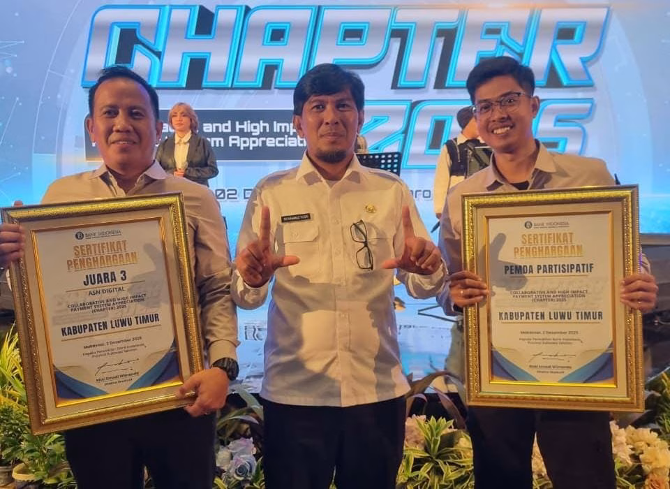 Kabupaten Luwu Timur kembali menorehkan prestasi membanggakan dengan meraih dua penghargaan pada ajang Collaborative and High Impact Payment System Appreciation (CHAPTER) 2025 dan ASN Digital Award yang digelar Bank Indonesia.