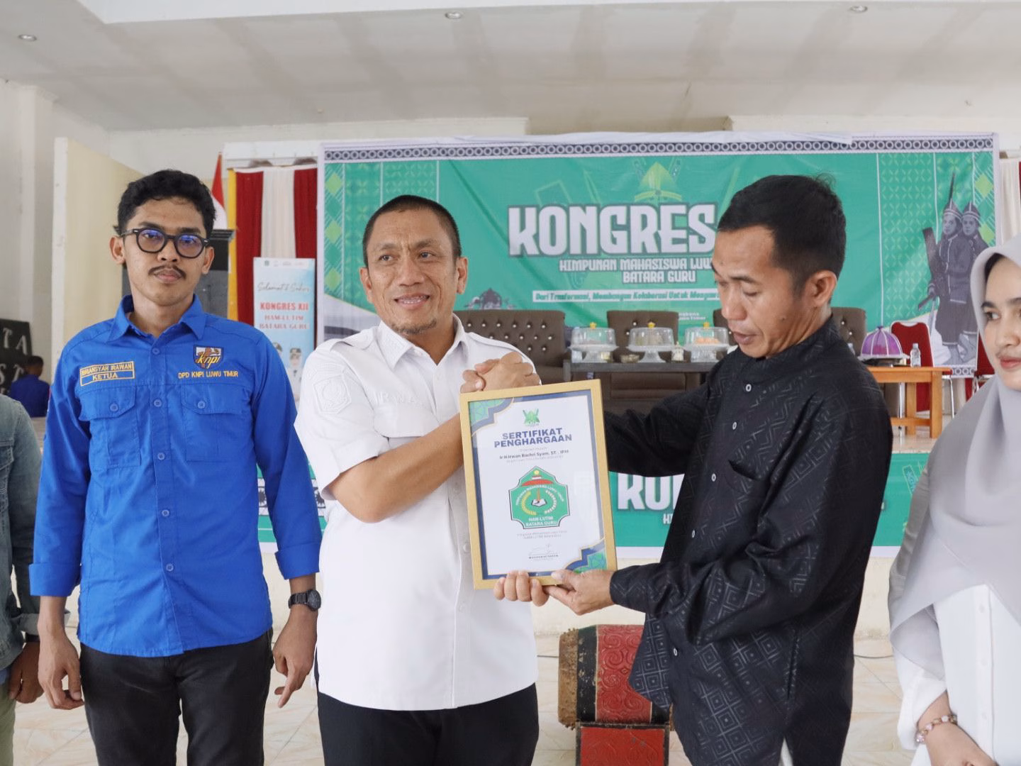 Bupati Luwu Timur, Irwan Bachri Syam, hadir dalam Kongres XII Himpunan Mahasiswa (HAM) Luwu Timur Batara Guru yang berlangsung di Aula Kantor Kecamatan Angkona, Jumat (05/12/2025).