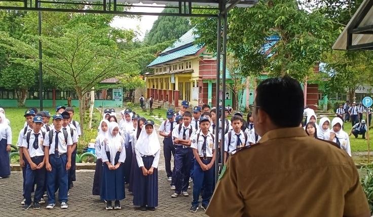 Tim monitoring dipimpin Kepala Seksi Ketenagaan Pendidikan Sekolah Menengah Pertama, Agussalim, bersama rombongan.