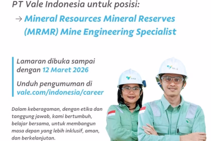 PT Vale Buka Lowongan Kerja Mine Engineering Specialist, Prioritaskan Talenta Luwu Timur